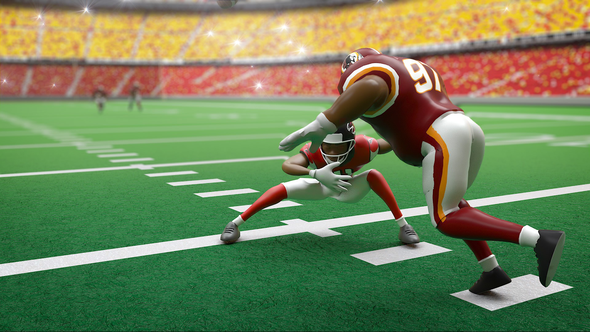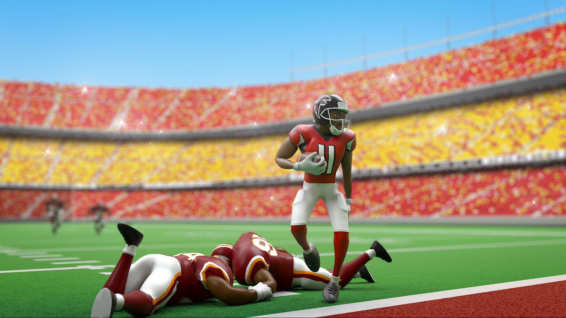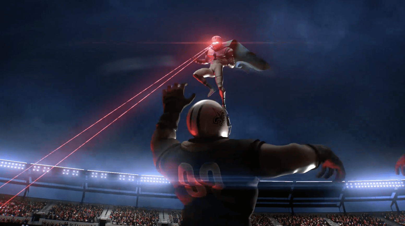A fun animated short we produced for Bleacher Report. The art direction was aimed at a Playstation 3 style. It doesn’t take much to make Cam Newton look like a superhero on the field, but we thought we’d give him a little extra boost. After animating in Maya, our team put some extra loving care into the sim of his cape to make sure it reacted to Cam’s movements accurately. We used ZBrush to sculpt him and the defenders, Cinema 4D for VFX and rendering, and After Effects for compositing.