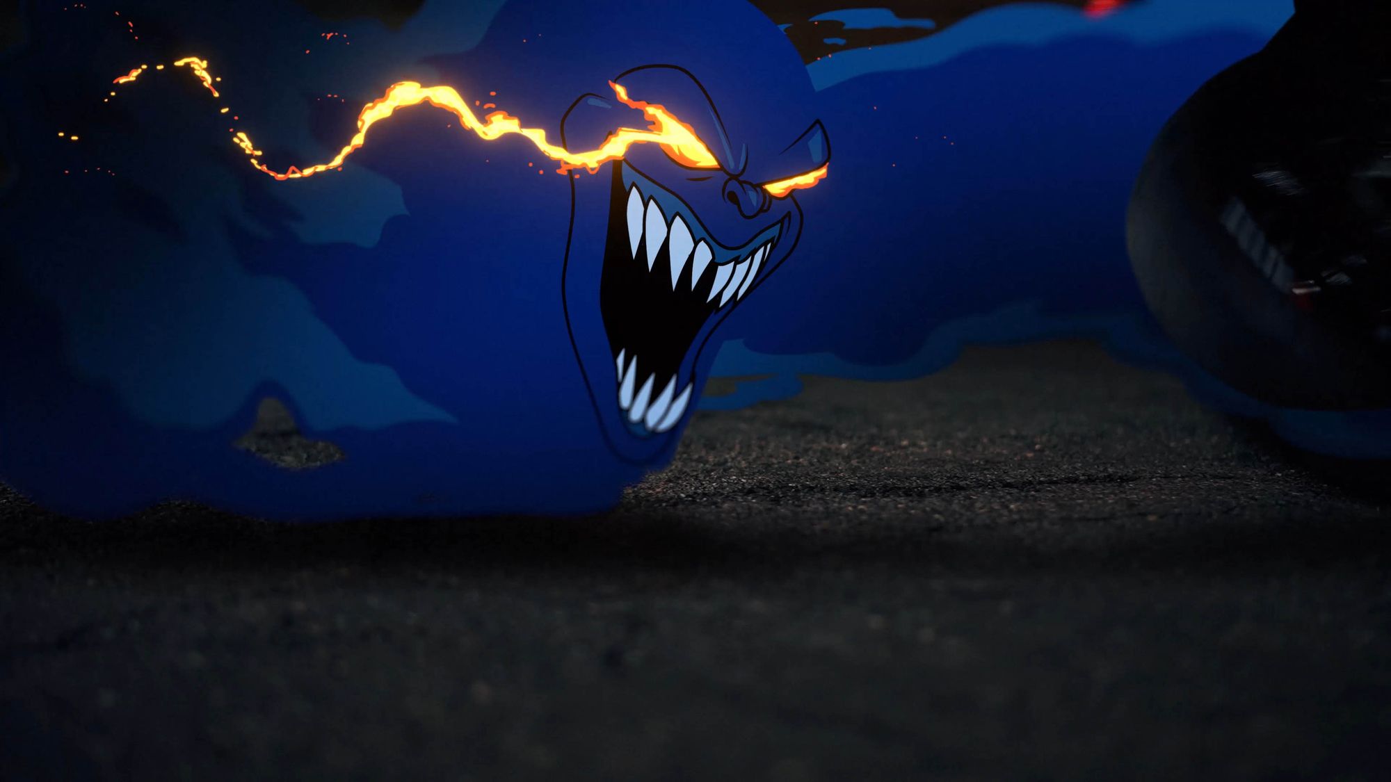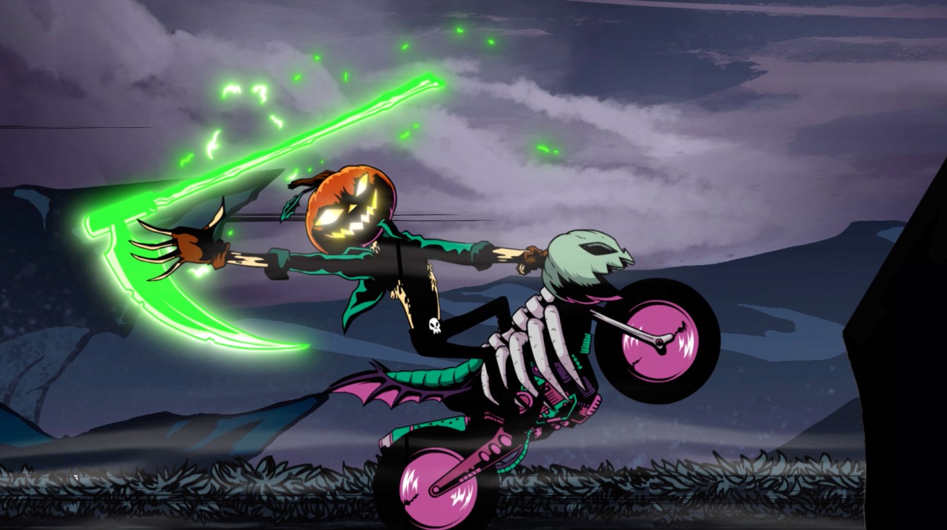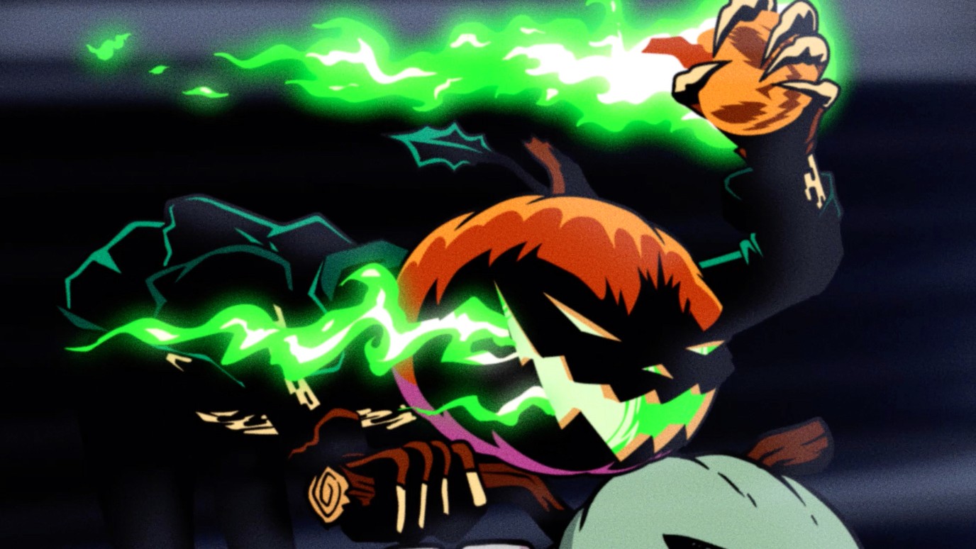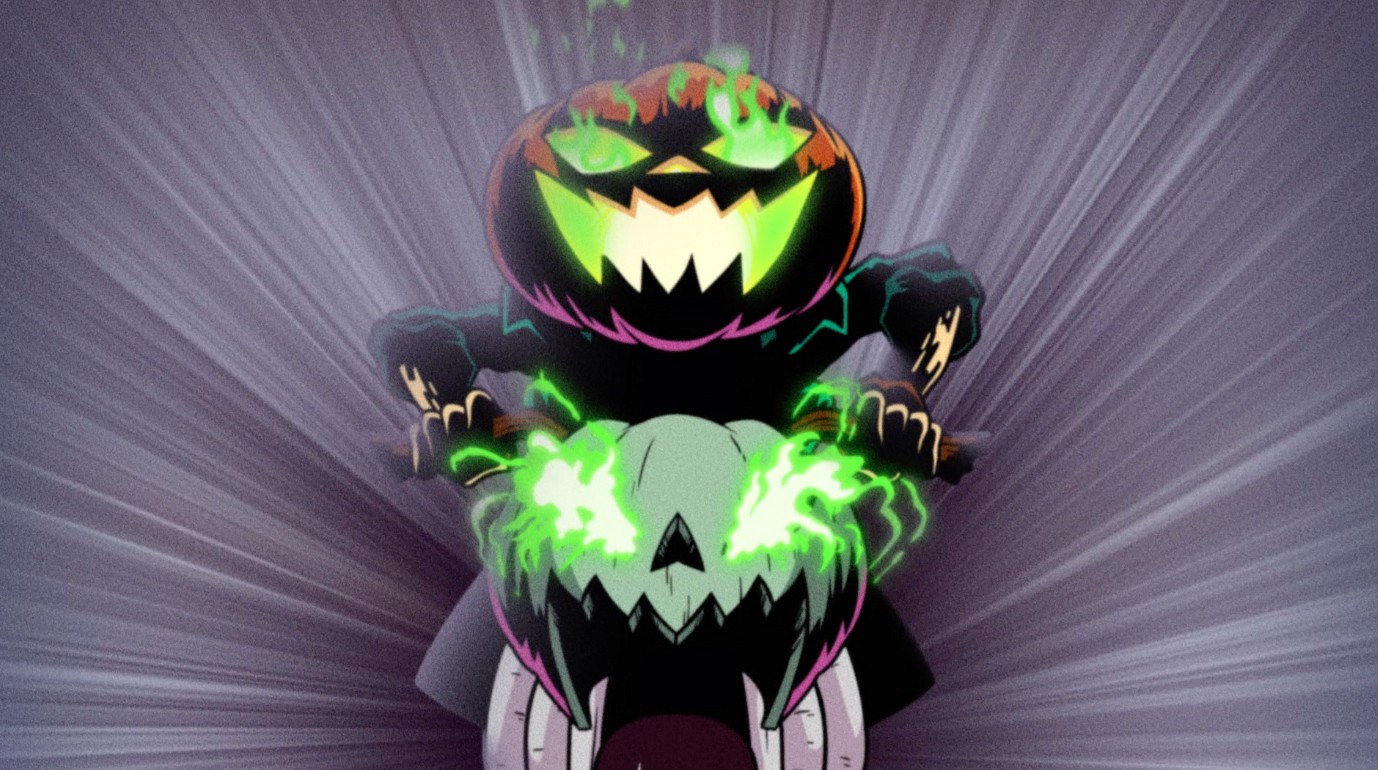 Trick or Street returns with Trick or Street 2, and it’s more sinister and darker than ever. Heavily inspired by the original logo and capturing the spookiness of Halloween, the pumpkin rider emerges from his evil pumpkin castle to wreak havoc upon the world and set it ablaze! The animation we created in this video showcases the rider’s dark magic as he summons his deadly weapons like his pumpkin bombs and scythe. We designed environments that match the character’s persona, casting him in deep black shadows. Tons of spooky gnarled roots come from the ground, evil-looking pumpkins litter the cracked and burning road, and jagged deadly mountains lay in the distance. Fire shows just how much carnage he was bringing to the world.
