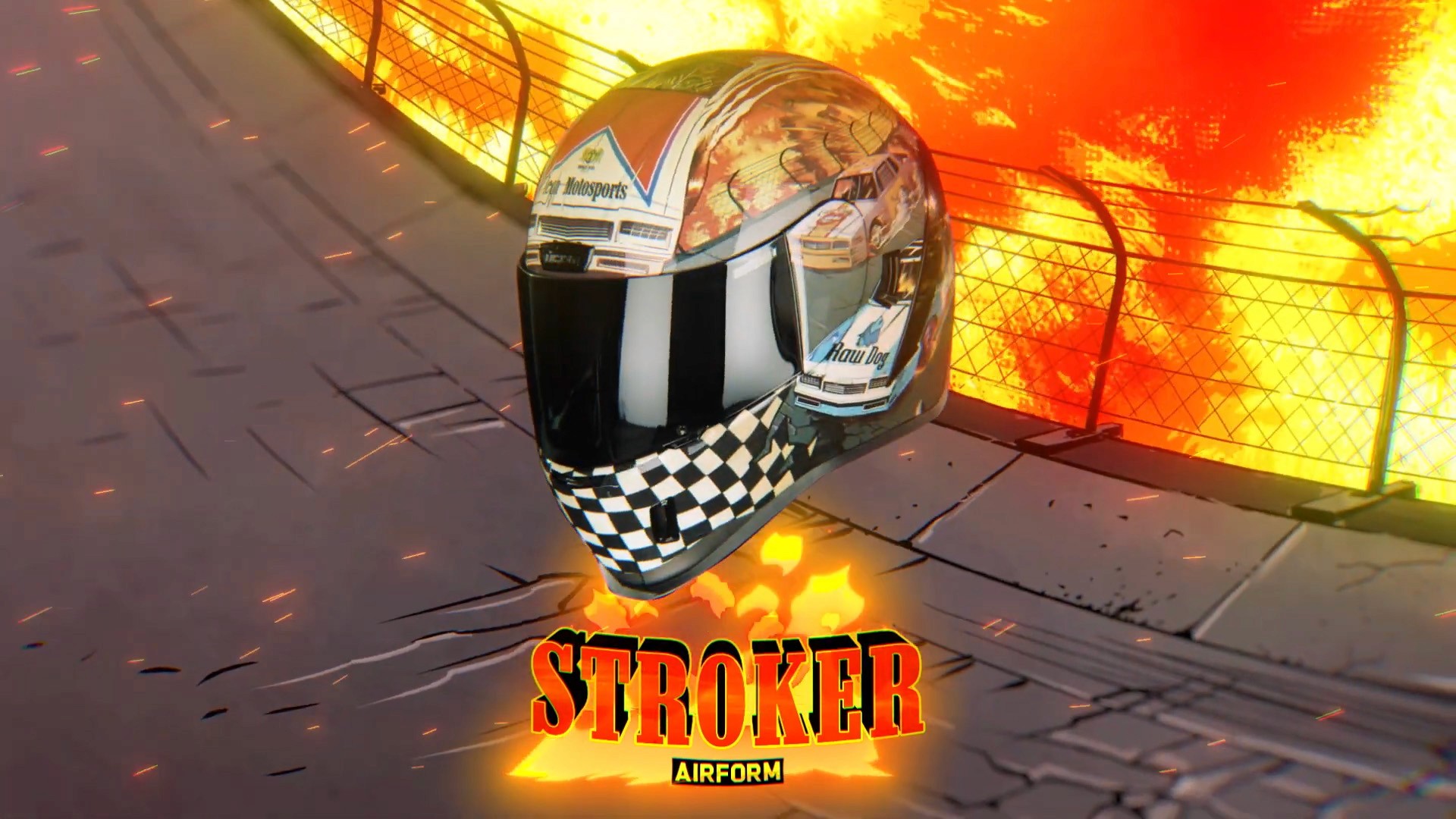 In collaboration with ICON Motosports we created a 2D animated short for their new helmet, the Airform Stroker, featuring our main characters on a crusade for speed, and rebel metal racing. In this short we see close ups of the iconic Raw Dog and Casa Diablo at the track racing to towards victory lane in a fiery explosion at the finish line.