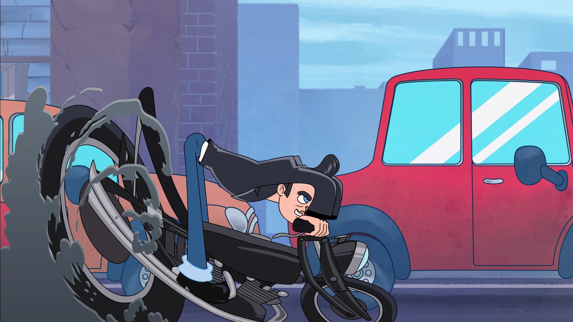 We kept this character’s need for speed in mind for our latest 2D animated short for ICON’s newest helmet release, the Airform Facelift. The Airform Facelift celebrates these heavy-handed throttle jockeys. In this short, our main crusin’ character speeds across the screen faster than his face can.