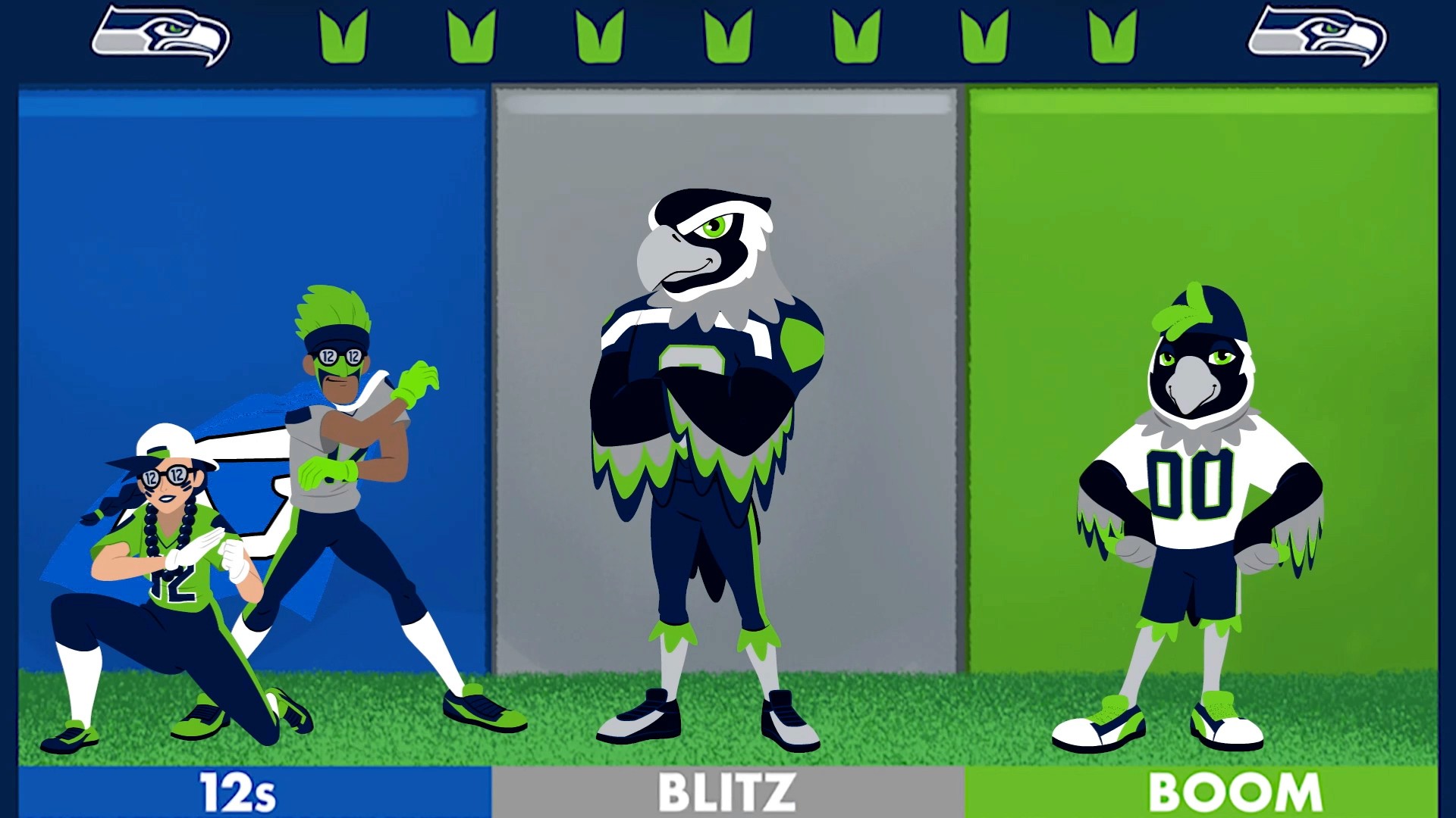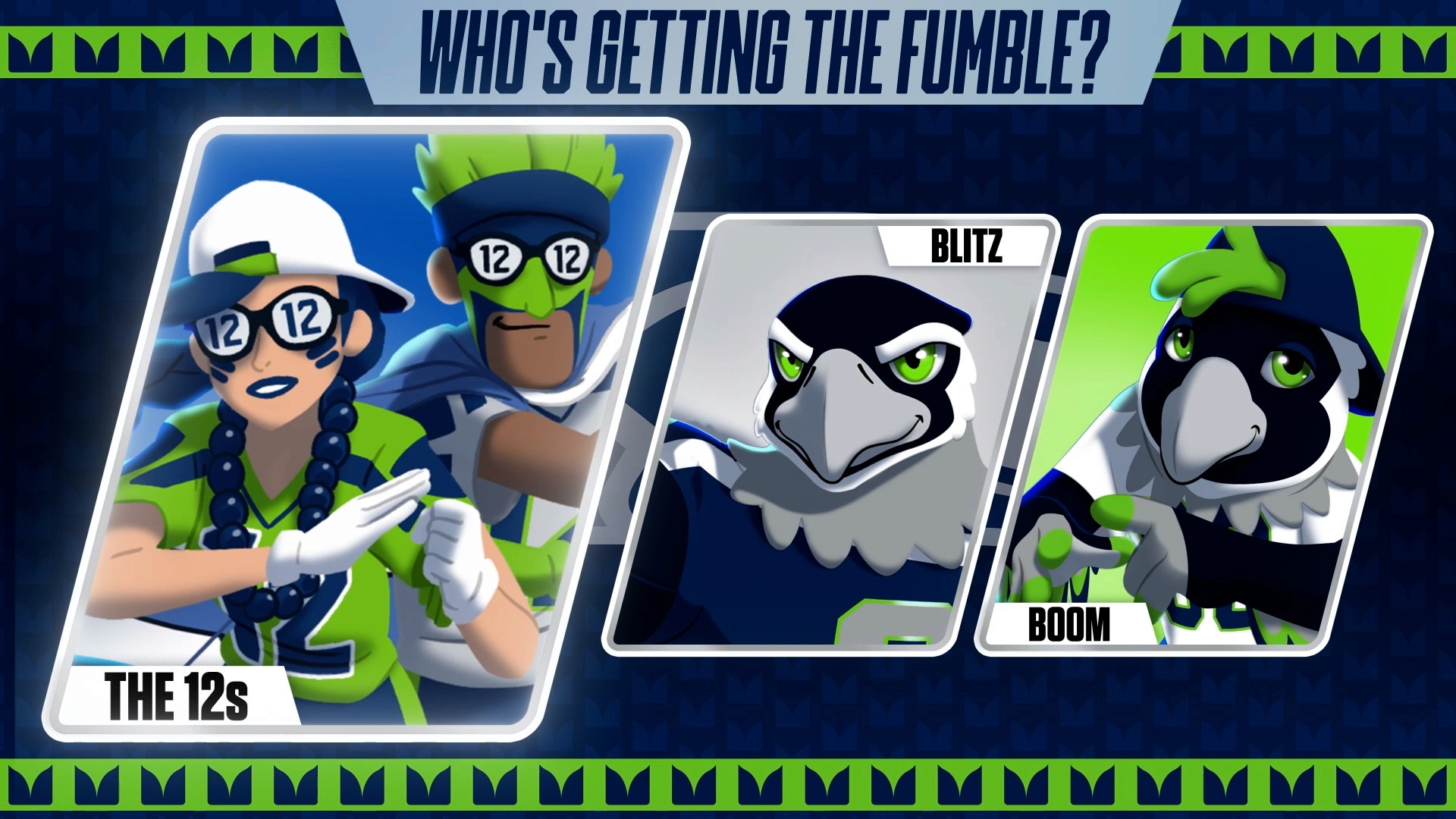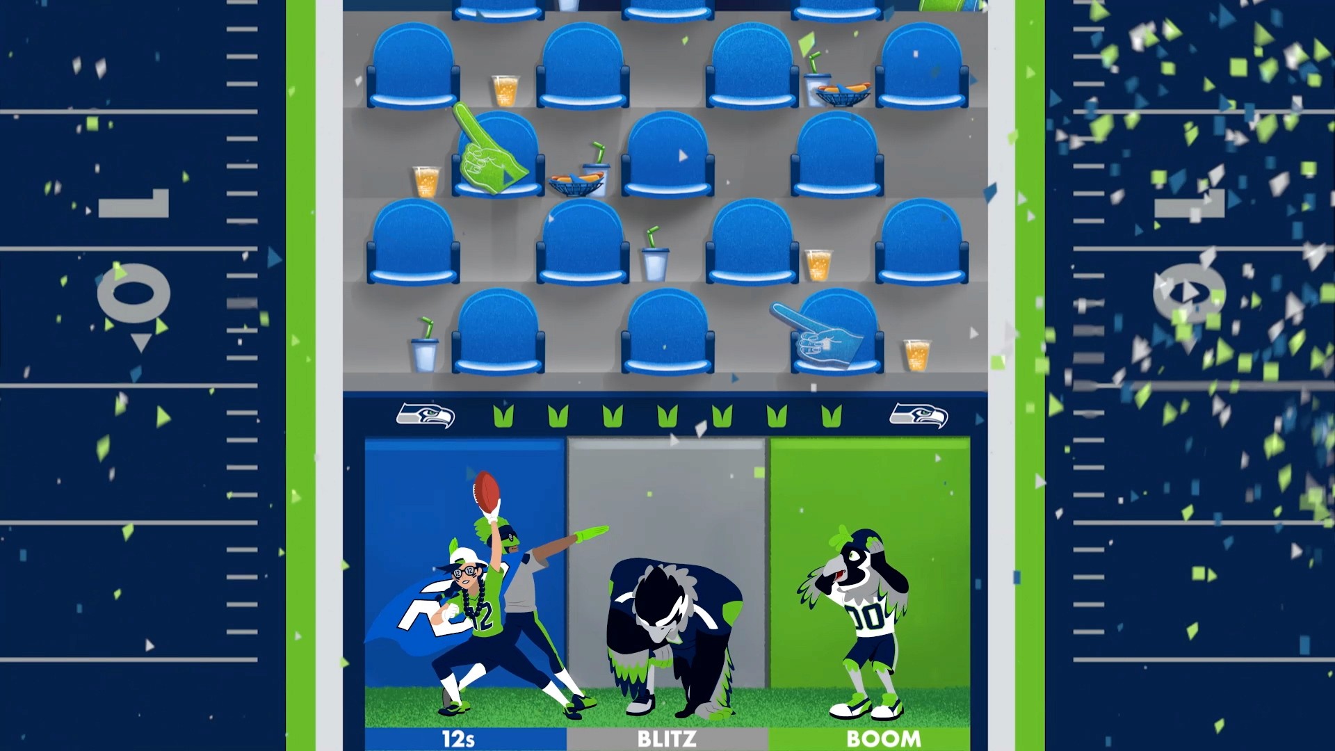 We teamed up with the NFL's Seattle Seahawks to create an engaging in-game animation to play at Lumen Field during the 2022 season. Inspired by the game Plinko, this animated scoreboard video engaged fans of all ages, strengthened their home field advantage, and promoted the strong culture around 'The 12s', all with a uniqely Seahawks, Seattle, and PNW-themed experience. We created 3 possible winners (The 12s, Blitz, and Boom) to keep fans on their feet each time.