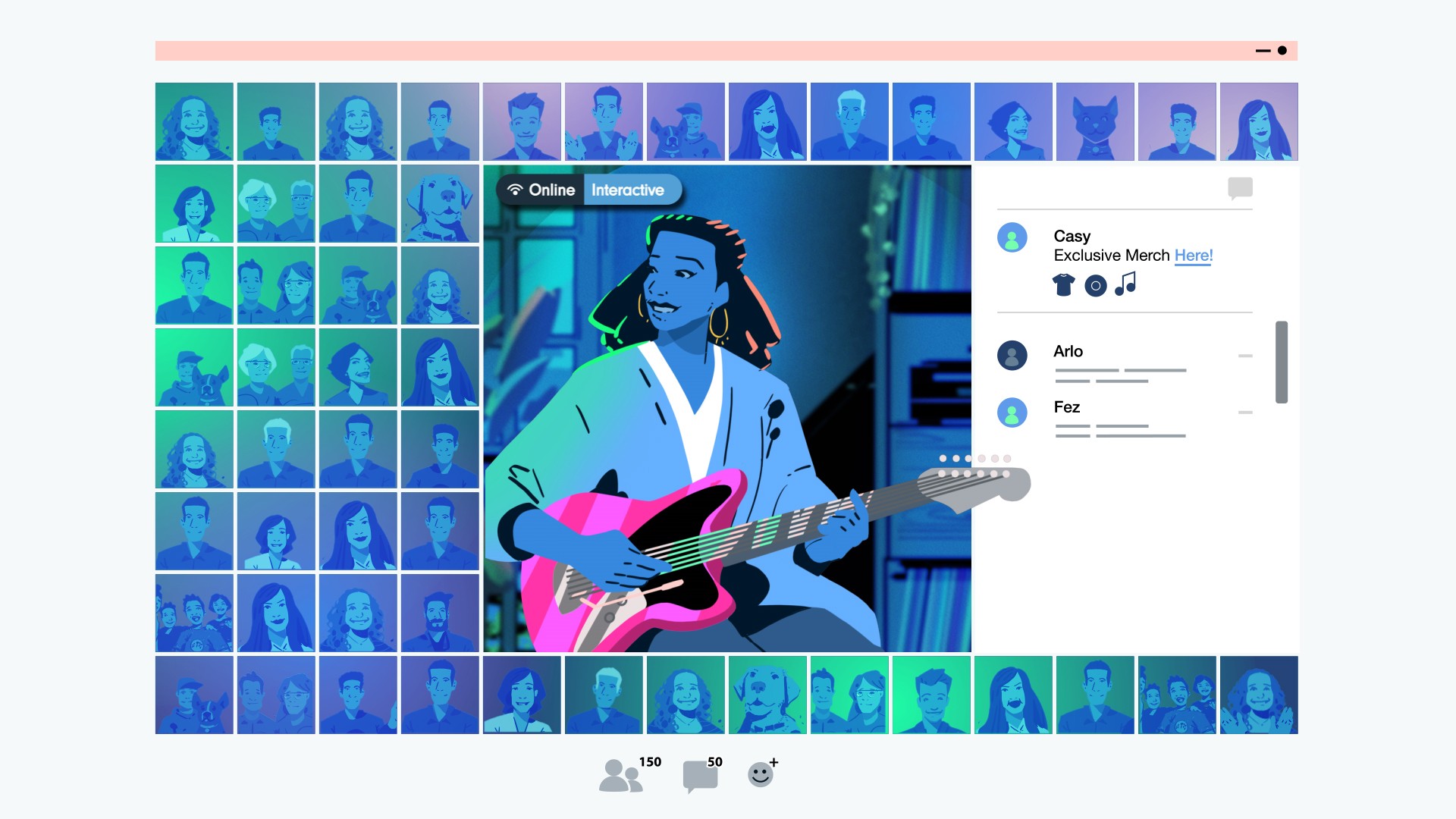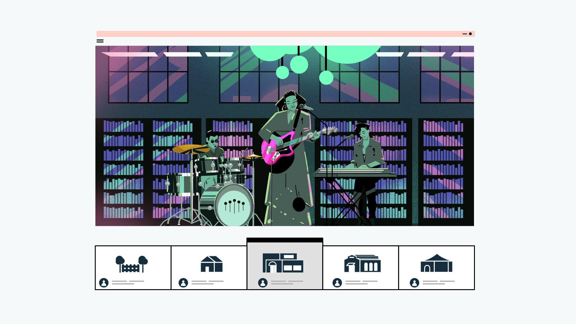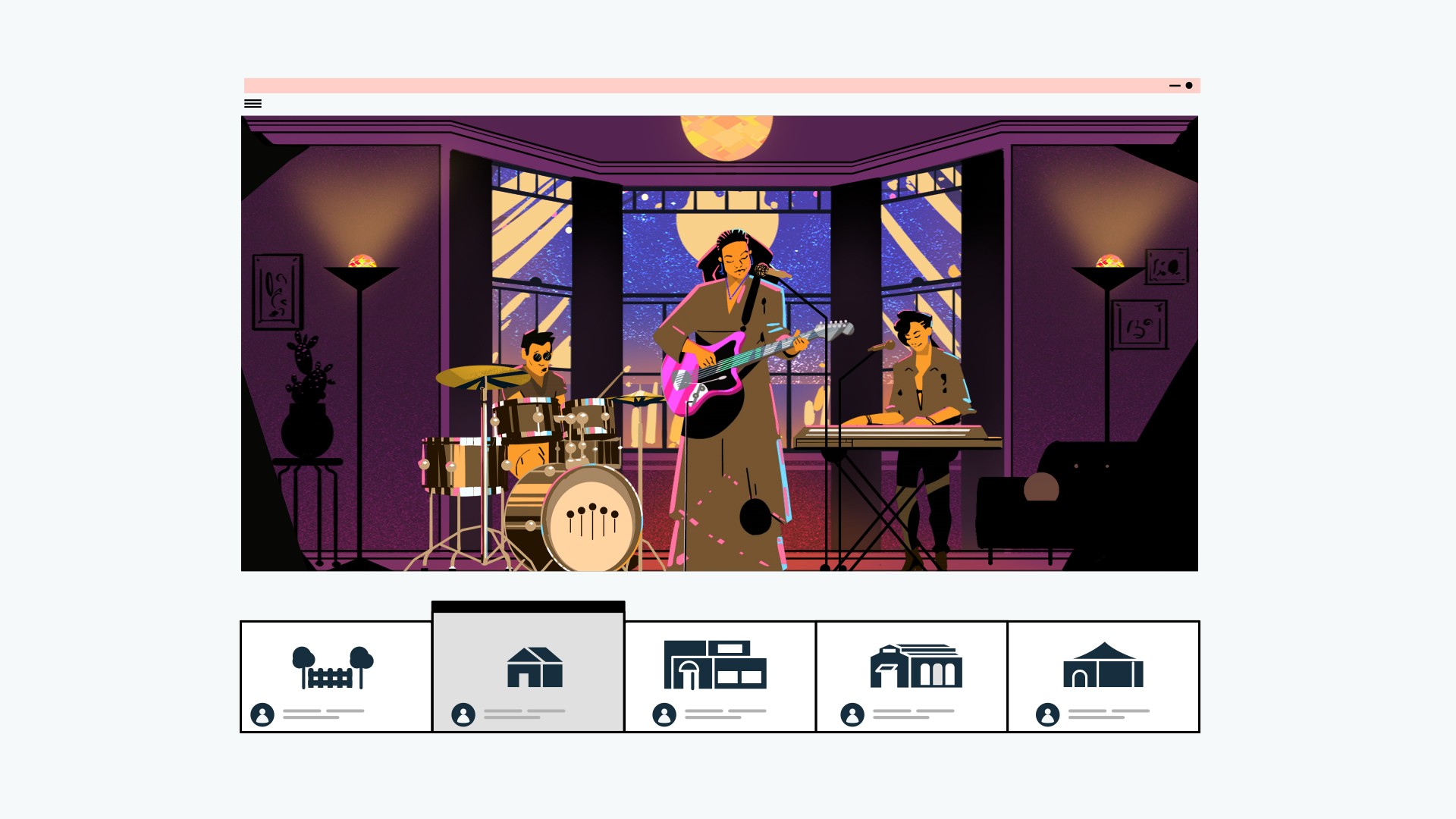The video's design needed to convey an intimate feeling between artists, hosts, and audiences, which is why we created loose painterly characters with an emphasis on the characters' shapes and interior details. Viewers of the video needed to understand the experience of using Side Door, rather than it being explicitly explained to them.