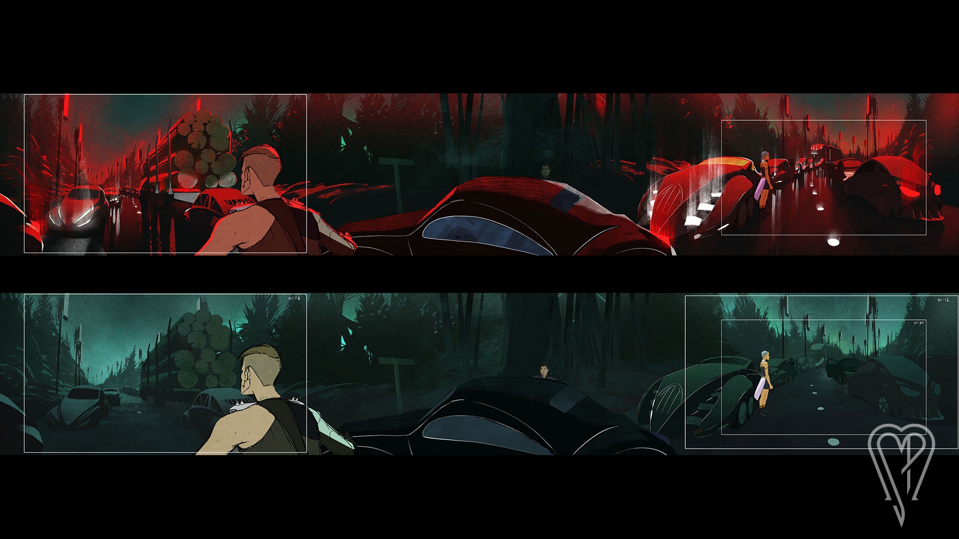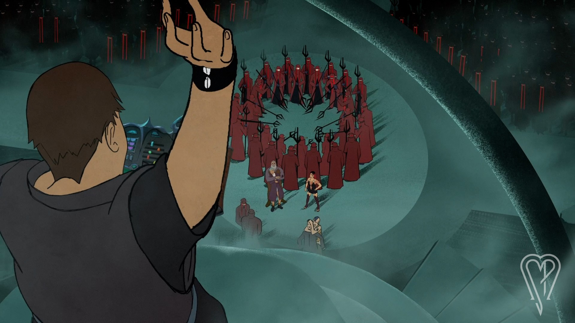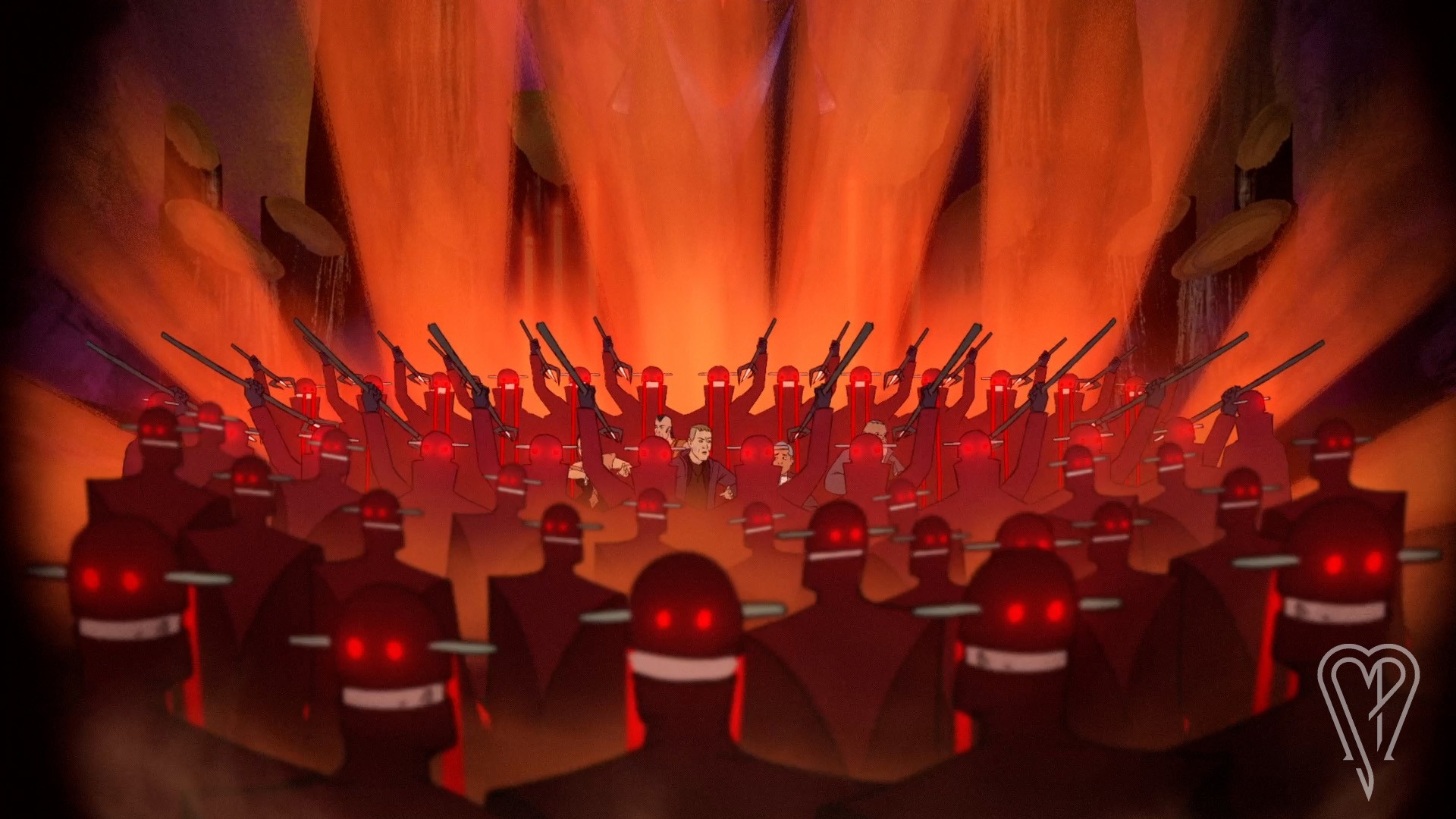 We typically didn’t hear the song before beginning production on a particular episode. Billy and his team would send us the script and his overall vision for the episode, from which we would break down into beats and begin creating storyboards. We applied those beats back to the music once we received it. Since this music acted more as a score than a direct sync to the animation, this created a comfortable pace for the narrative.